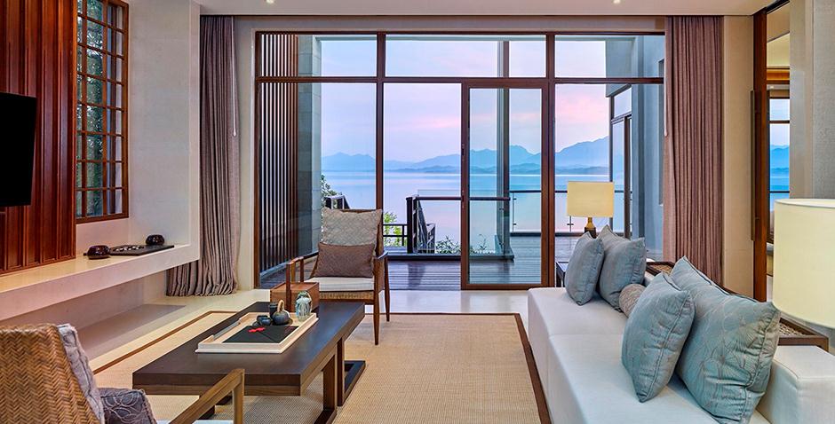酒店由香港郑中设计师事务所(CCD)负责设计,球盟会·(中国)官方网站由金凤凰球盟会·(中国)官方网站集团倾力打造,将山湖相交与新中式设计元素相互融合,景中有景,交相呼应,让宾客在酒店就能欣赏到佛教文化内涵深厚的云居山和碧波万顷、绿岛拥翠的柘林湖。